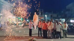 ఆదిలాబాద్ జిల్లా బేల మండల కేంద్రంలోని శివాజీ చౌరస్తాలో బీజేపీ ఆధ్వర్యంలో ఆదివారం రాత్రి సంబరాలు జరుపు కున్నారు. మూడోసారి ప్రధానమంత్రిగా నరేంద్ర మోదీ ప్రమాణ స్వీకారం చేయడంతో మోదీ కటౌట్తో సంబరాలు చేపట్టారు. టపాసులు పేల్చి, స్వీట్లు తినిపించుకున్నారు.ఈ కార్యక్రమంలో మండల అధ్యక్షుడు దత్తా నిక్కమ్, మాజీ సర్పంచ్ ఇంద్రశేఖర్, బోనిగిరివార్ గణేష్, రాము, ఉప్పల్ వార్ నారాయణ్ ధర్నే జీవన్, కృష్ణ, శంకర్, తదితరులు పాల్గొన్నారు.